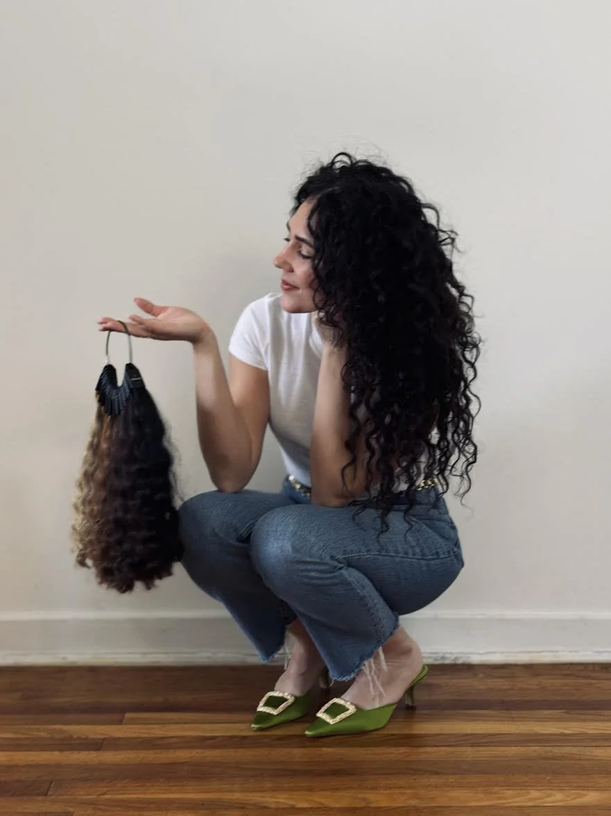 I specialize in custom curly hair extensions designed to blend seamlessly with your natural curl pattern.